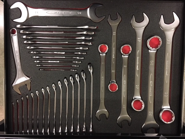 Chariot à outils rempli de Bahco. Le chariot d’outils est équipé de 190 outils.