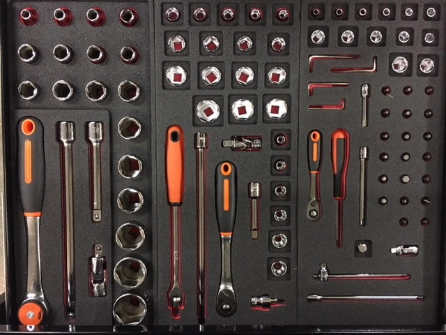 - La forme est précisément adaptée à chaque outil, de sorte que chaque outil est parfaitement rangé et facile à atteindre.