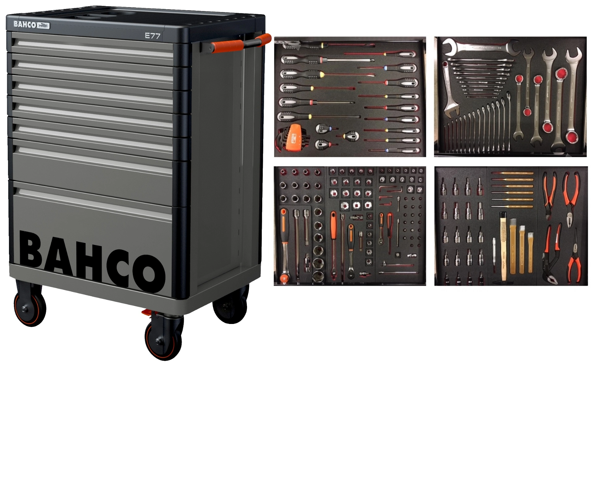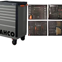 Chariot à outils rempli de Bahco. Le chariot d’outils est équipé de 190 outils.