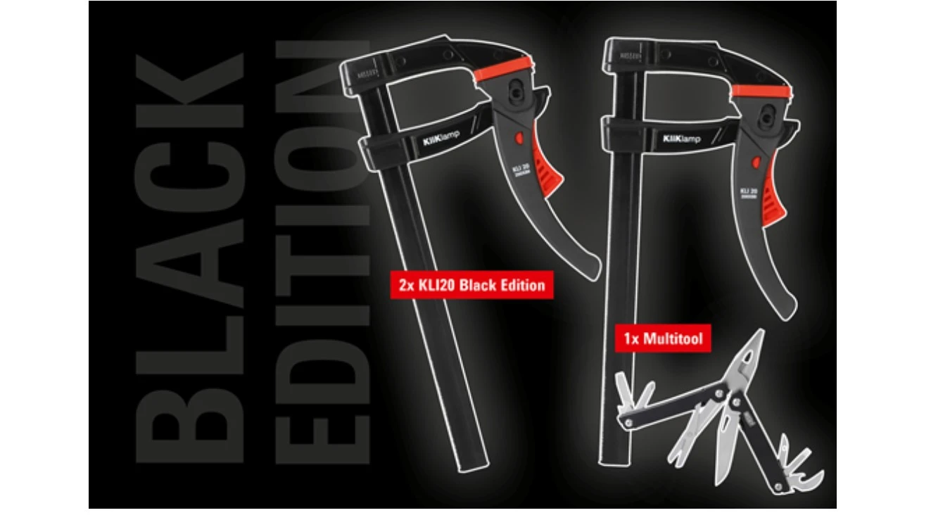 Bessey KLI-SET-A Action pack – 2 x KLI20 Black edition Lampe à cliquer Pince à colle rapide 0-200 mm + Multitool