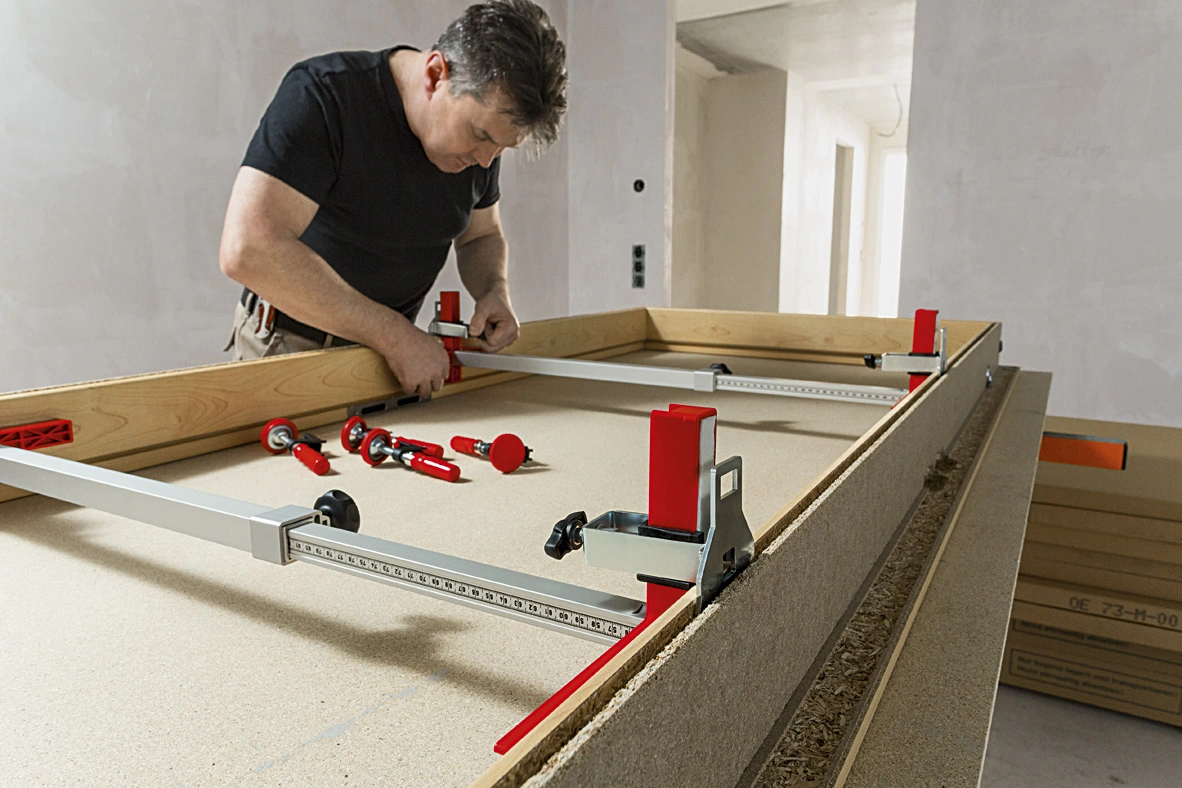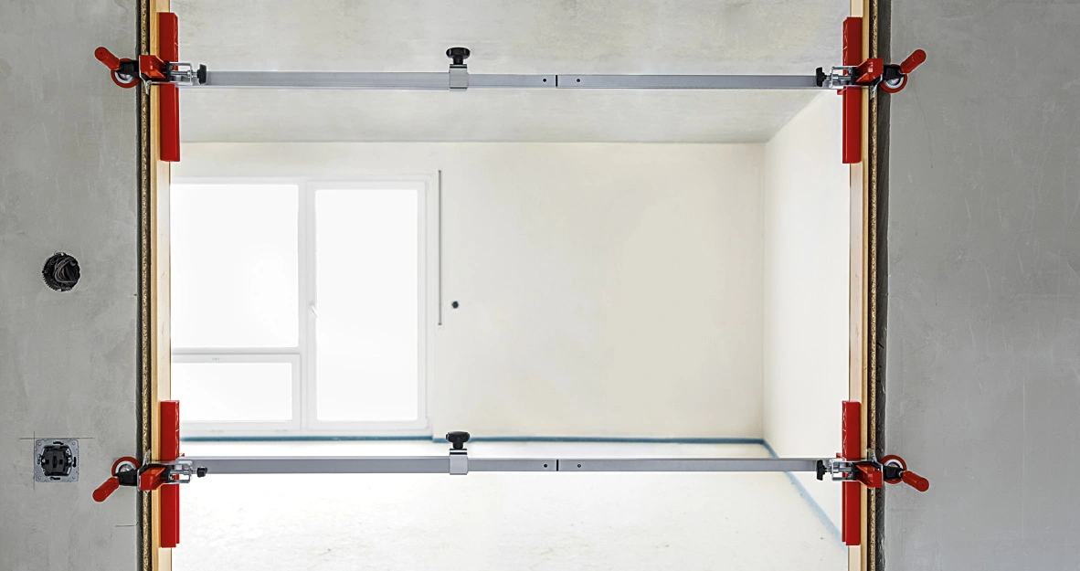- Fixe et soutient les revĂȘtements de portes pendant le remplissage des joints de murs de maniĂšre protectrice et prĂ©cise