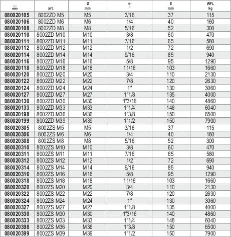Beta 080020398 Oeillets pour tendeurs, filetage à droite M36 Ø mm