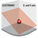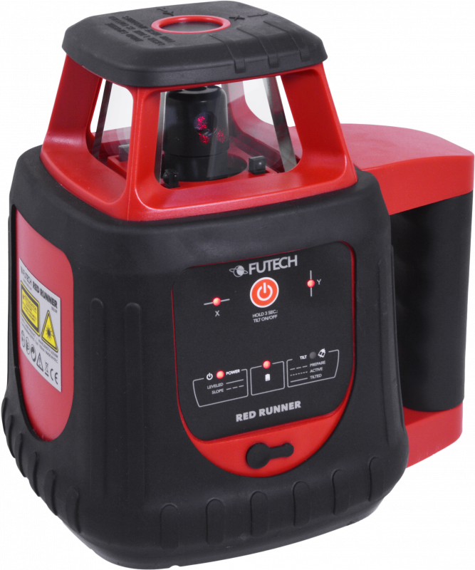 Laser rouge rotatif pour usage extérieur (IP65) avec une portée de 2x 250m avec récepteur (optionnel). Un seul bouton sur l’appareil rend son utilisation très facile. Mise à niveau électronique par moteur avec une précision de 1mm/10m et double inclinaison (axe X + Y, par télécommande). Possède une fonction d’inclinaison.