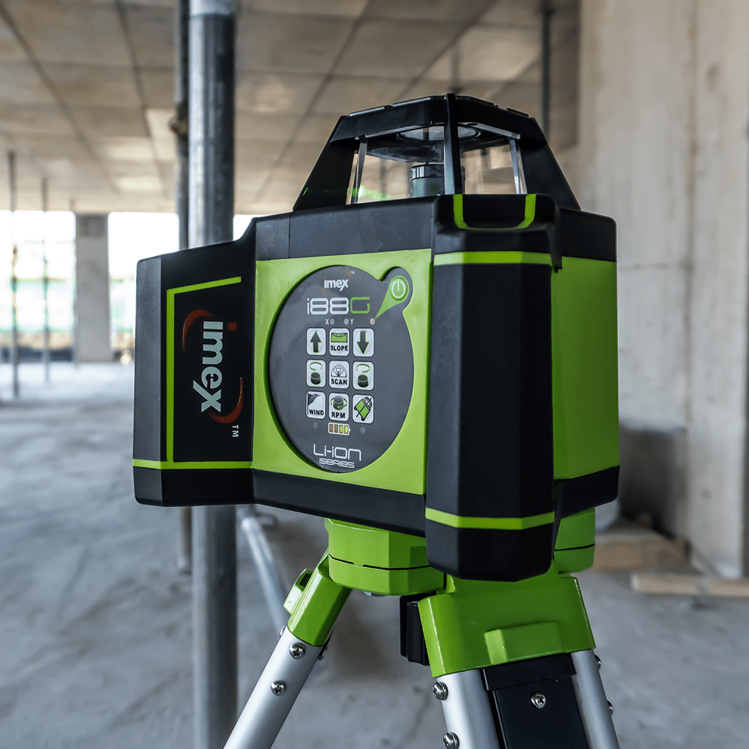 - Le laser rotatif Imex i88G a des capacités polyvalentes qui sont idéales pour les travaux de construction, tels que la pose de fondations et le terrassement.