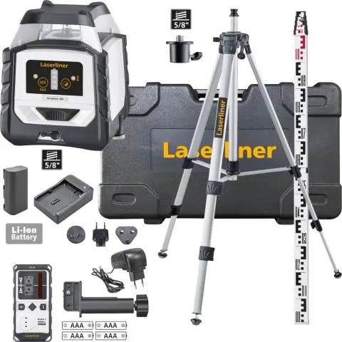 - Robuste laser linéaire horizontal à 360 degrés avec système anti-dérive, trépied compact de 175 cm, mire de nivellement télescopique de 3 m et récepteur laser.