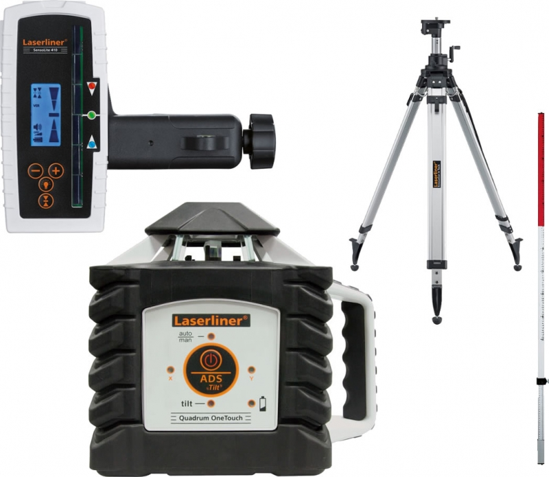 Laserliner Quadrum OneTouch 410 S SET Laser rotatif + bâton de mesure Flexi gratuit + trépied à broche P260 cm