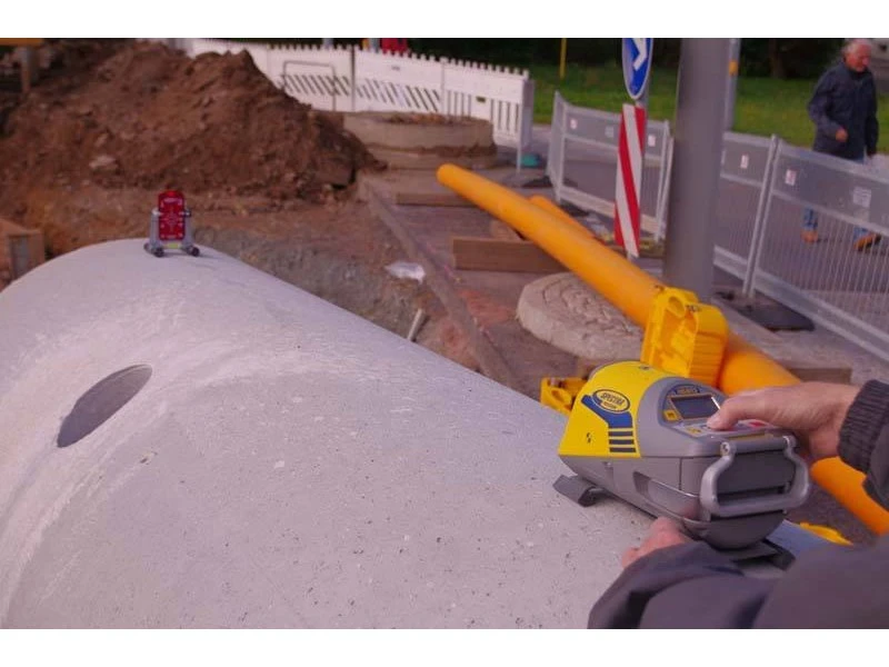 - Le nouveau DG613G se caractérise également par une gamme gigantesque. Le faisceau laser vert vif est clairement visible jusqu’à une distance de 150 mètres. La télécommande a également une portée énorme. Le laser d’égout peut être commandé depuis le haut par radio jusqu’à une distance de 130 mètres. Grâce au signal infrarouge, une distance de 150 mètres est même possible.